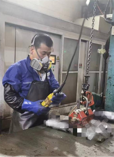 銷(xiāo)軸鍍鉻作為銷(xiāo)軸生產(chǎn)中的表面處理工序,在保證發(fā)貨及時(shí)率和產(chǎn)品性能質(zhì)量方面起到重要作用。表面加工部鍍鉻生產(chǎn)線由26名員工組成,分兩班生產(chǎn)。因其操作環(huán)境的特殊性,員工們?cè)趶S房?jī)?nèi)必須穿戴各種勞動(dòng)保護(hù)用品,如防毒面罩、防護(hù)服、橡膠手套、工鞋等。夏季,在溫度高于室外的廠房?jī)?nèi),一線操作者穿戴好防護(hù)用品,猶如蒸桑拿般汗如雨下卻沒(méi)有人抱怨喊累。 07