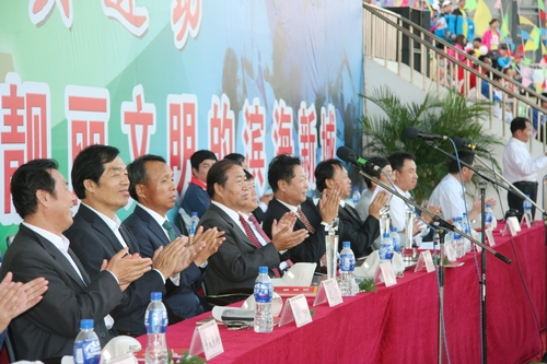 部長、總工會副主席王希飛;煙臺開發(fā)區(qū)總工會副主席榮學(xué)超;煙臺開發(fā)區(qū)體育