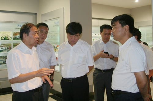 圖一:杜寶棟董事長(zhǎng)向李福才部長(zhǎng)(右一)介紹情況