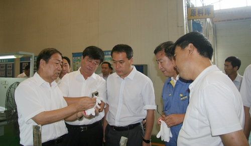 圖二、杜寶棟董事長(zhǎng)陪同李部長(zhǎng)等人在YSD車間