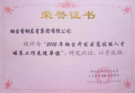 在近日召開的開發(fā)區(qū)勞資會議上,煙臺東星集團(tuán)有限公司獲評煙臺經(jīng)濟(jì)技術(shù)開發(fā)區(qū)人力資源和社會保障局“2012年煙臺開發(fā)區(qū)高技能人才培養(yǎng)工作先進(jìn)單位”榮譽(yù)稱號。