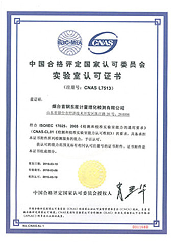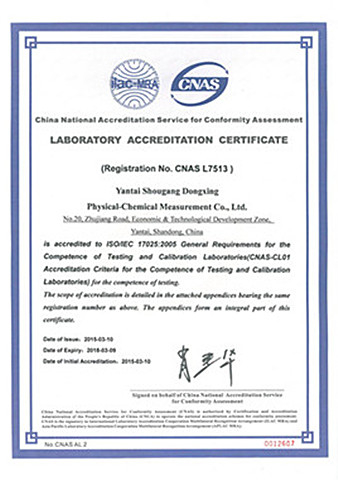 經(jīng)過東星計量中心全體人員的共同努力,于2015年3月10日通過了中國合格評定國家認可委員會的全項評審,并獲得資質(zhì)證書。