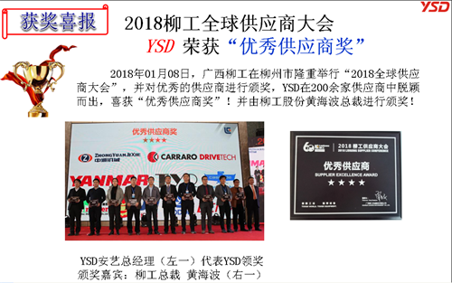 2018年柳工全球供應(yīng)商大會(huì)YSD榮獲“優(yōu)秀供應(yīng)商獎(jiǎng)”