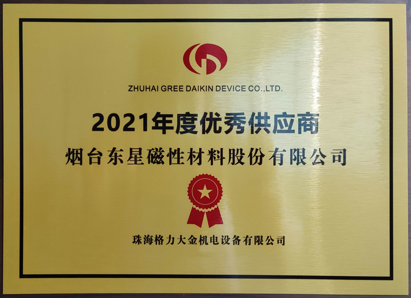 金秋九月、喜訊連連,煙臺東星磁性材料股份有限公司(YSM)在格力大金供應(yīng)商評選中喜獲“2021年度優(yōu)秀供應(yīng)商”榮譽(yù)稱號。