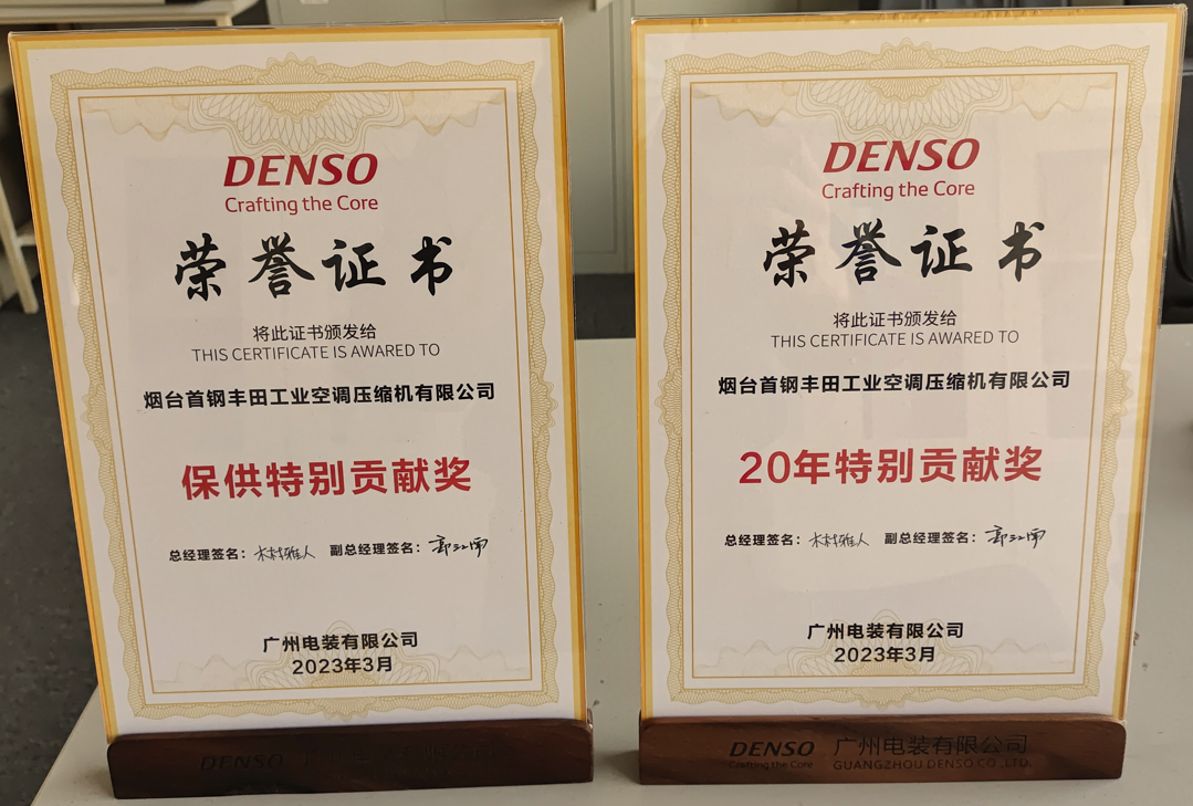 ? 近日,廣州電裝有限公司(DMGZ)召開合作方大會(huì),煙臺(tái)首鋼豐田工業(yè)空調(diào)壓縮機(jī)有限公司(YST)總經(jīng)理渡邊靖一行出席會(huì)議,與各行業(yè)供應(yīng)商代表們深度交流,感恩過往,暢想未來。 在疫情期間,YST秉持客戶第一的原則空運(yùn)日本供貨,并幫助兄弟公司代為交貨。因在持續(xù)保供方面作出的積極努力,YST獲得2022年度“保供特別貢獻(xiàn)獎(jiǎng)”。 2023年是DMGZ成立20周年,20載風(fēng)雨彩虹,YST與DMGZ并肩走過。在本次會(huì)議上,YST還被授予“20年特別貢獻(xiàn)獎(jiǎng)”。