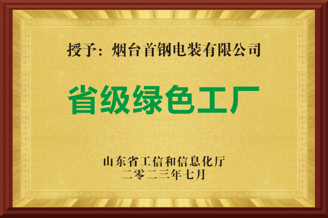 近日,煙臺(tái)首鋼電裝有限公司(YSD)榮獲由山東省工信和信息化廳頒發(fā)的“省級(jí)綠色工廠”榮譽(yù)稱號(hào)。
