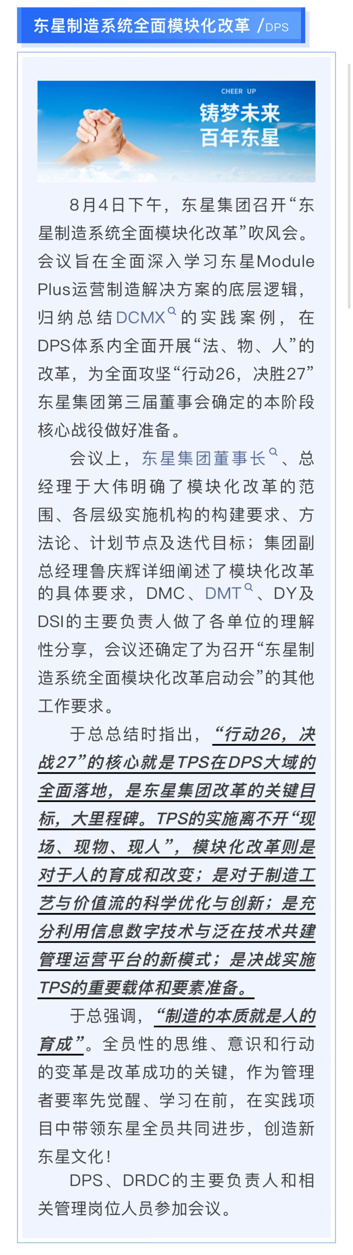 東星集團DPS召開“東星制造系統(tǒng)全面模塊化改革”吹風(fēng)會