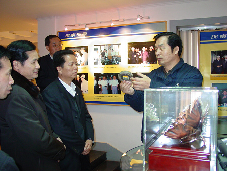 軍代表杜寶棟董事長(zhǎng)向客人表示熱烈歡迎,并陪同客人先后參觀產(chǎn)品展